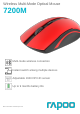 Wireless Multi-Mode Optical Mouse 7200M Multi-mode wireless connection Instant switch among multiple devices Adjustable 1600 DPI HD sensor Up to 9 months battery life More information at www.rapoo.