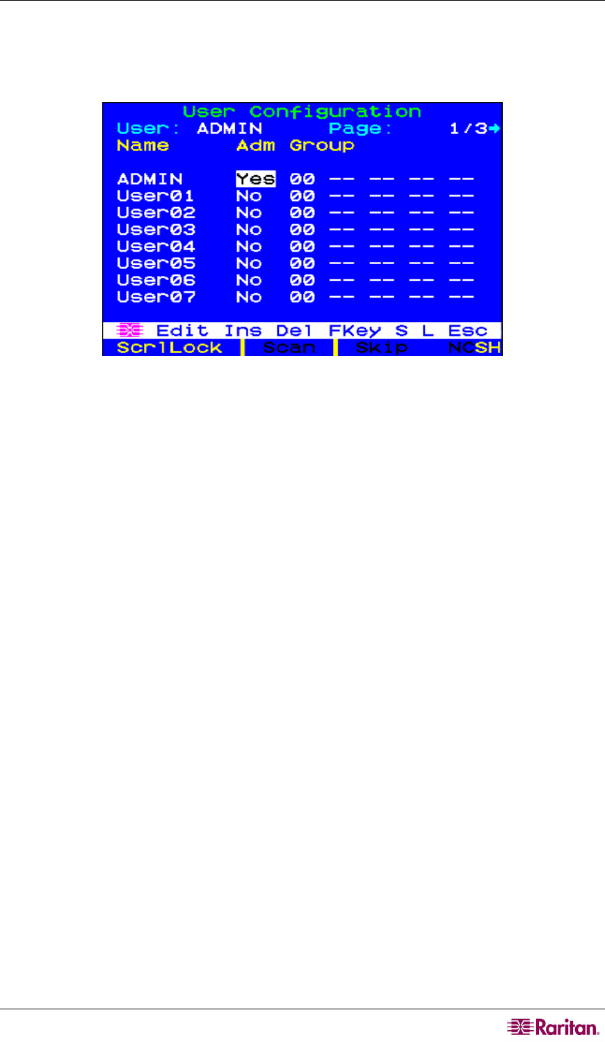 • Adm: Indicates whether any given user has administrator privileges. You can use the Ç and