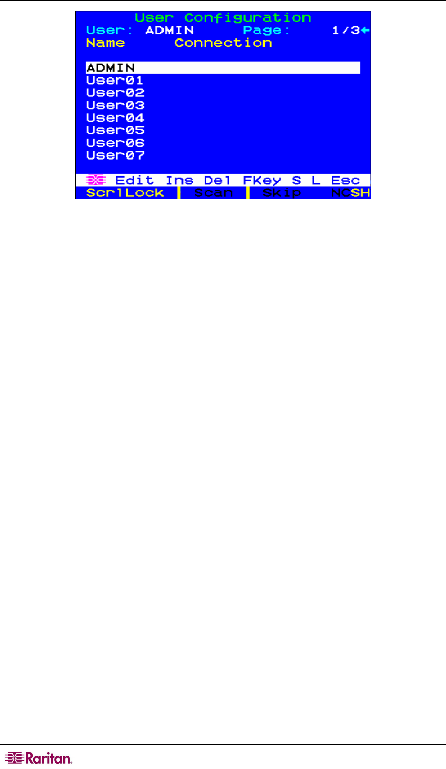 • Add a new user by pressing the Insert key. A new default user name will be added in the end