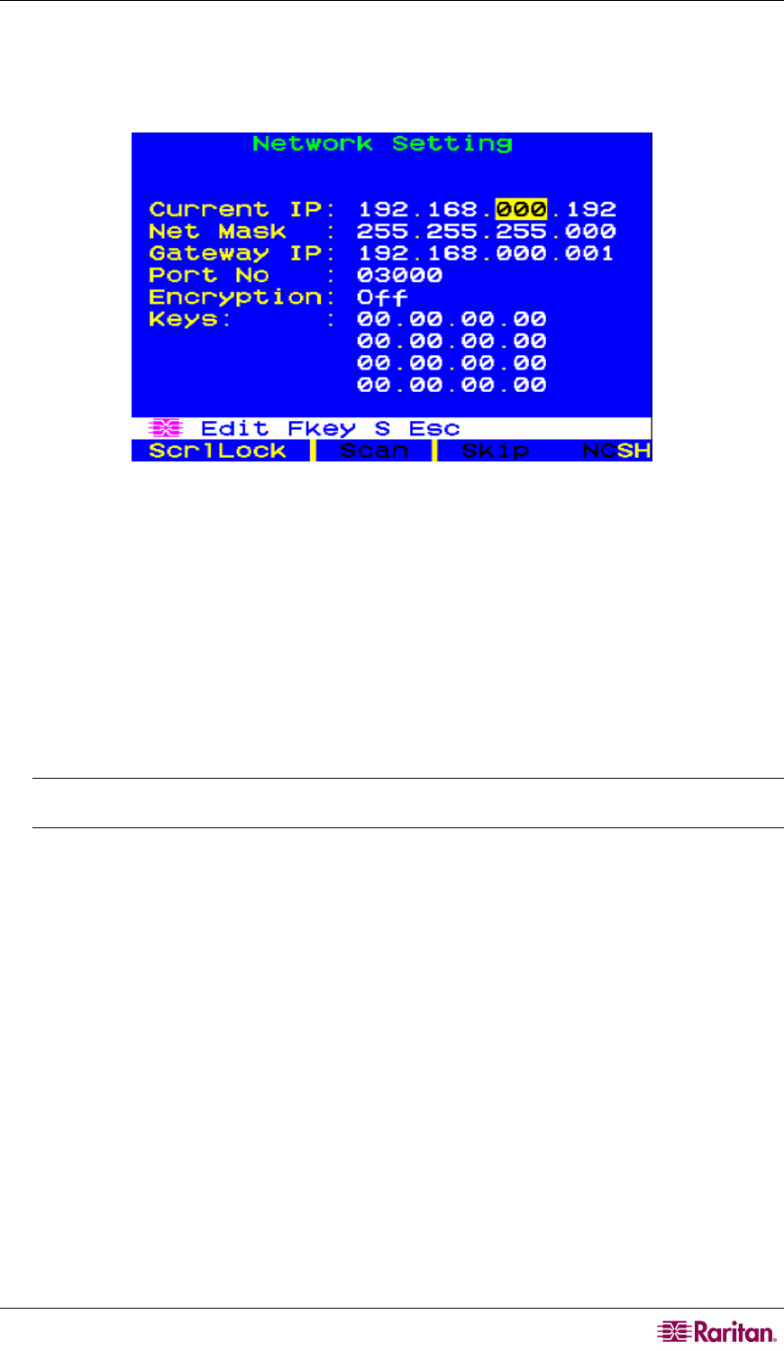 network. Use the arrow keys to scroll over to each byte and change the IP as needed. The