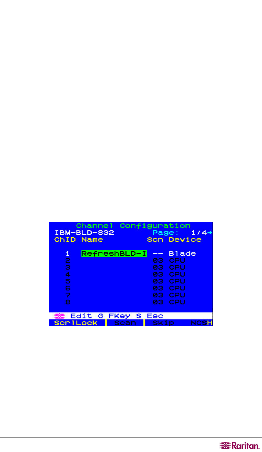 8. Press S to refresh the BladeCenter channel status. It takes 2 to 4 minutes to complete
