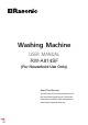 Washing Machine USER MANUAL RW-A814SF (For Household Use Only) Read This Manual Use all instructions and explanations of the installation before use. Follow the instructions carefully. Keep the operation instructions handy for later use.
