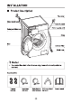 INSTALLATION Installation Installation area ! WARNING! • Stability is important to prevent the product from wandering! • Make sure that the product should not stand on the power cord. w w W> 20mm Before installing the machine, the location characterized as follows shall be selected: 1.Rigid, dry, and level surface 2.Avoid direct sunlight 3.Sufficient ventilation 4.Room temperature is above 0℃ 5.Keep far away from the heat resources such as coal or gas.