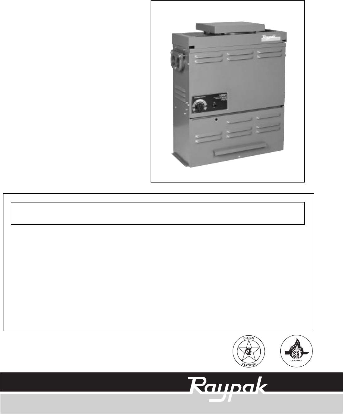 www.raypak.com Raypak, Inc., 31111 Agoura Road, Westlake Village, CA 91361-4699 (818) 889-1500 FAX (818) 889-4522 Raypak Canada LTD, 2805 Slough Street, Mississauga, Ontario, Canada L4T 1G2 (905) 677-7999 FAX (905) 677-8036 Raypak Australia Pty. Ltd, 7 Geddes St., Mulgrave, Victoria, Australia 3170 (6139) 560 4944 FAX (6139) 560 4974 Litho in U.S.A.
