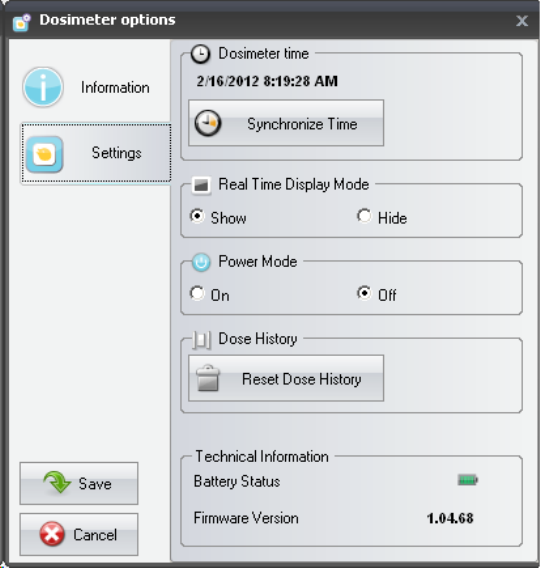 • View and synchronize the dosimeter’s clock with the computer’s clock.