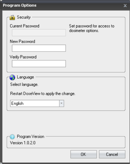 • Specify a password to protect the access to the dosimeter options dialog. The password is only used when