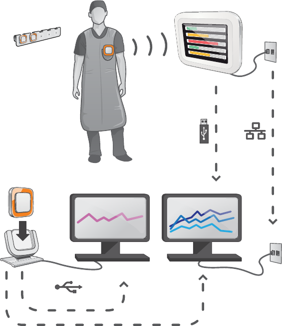 • cradle (dock station used to connect dosimeters and computer)