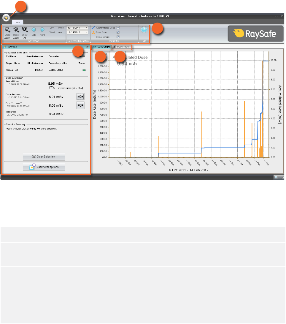 1 Application menu Access the dose viewer options dialog, see section “Specify password