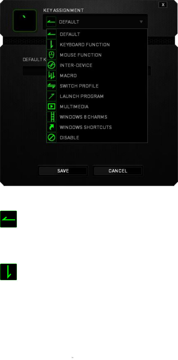 Initially, each key is set to DEFAULT. However, you may change the function of this key by clicking