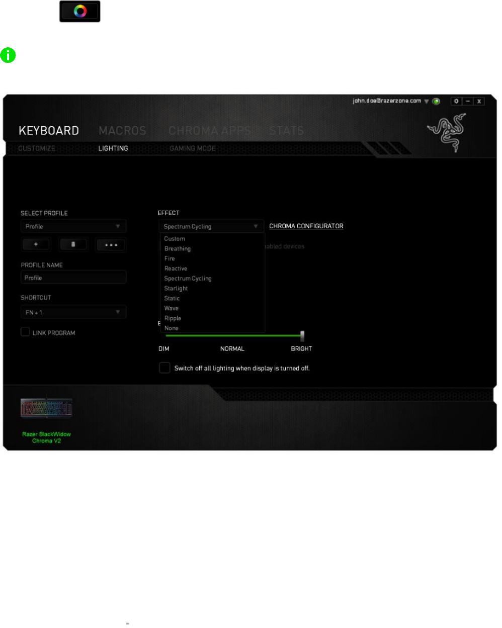 choose from different basic lighting effects or create your own using the Chroma Configurator. If