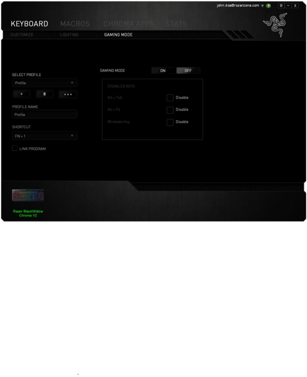 The Gaming Mode Tab allows you to customize which keys to disable when Gaming Mode is