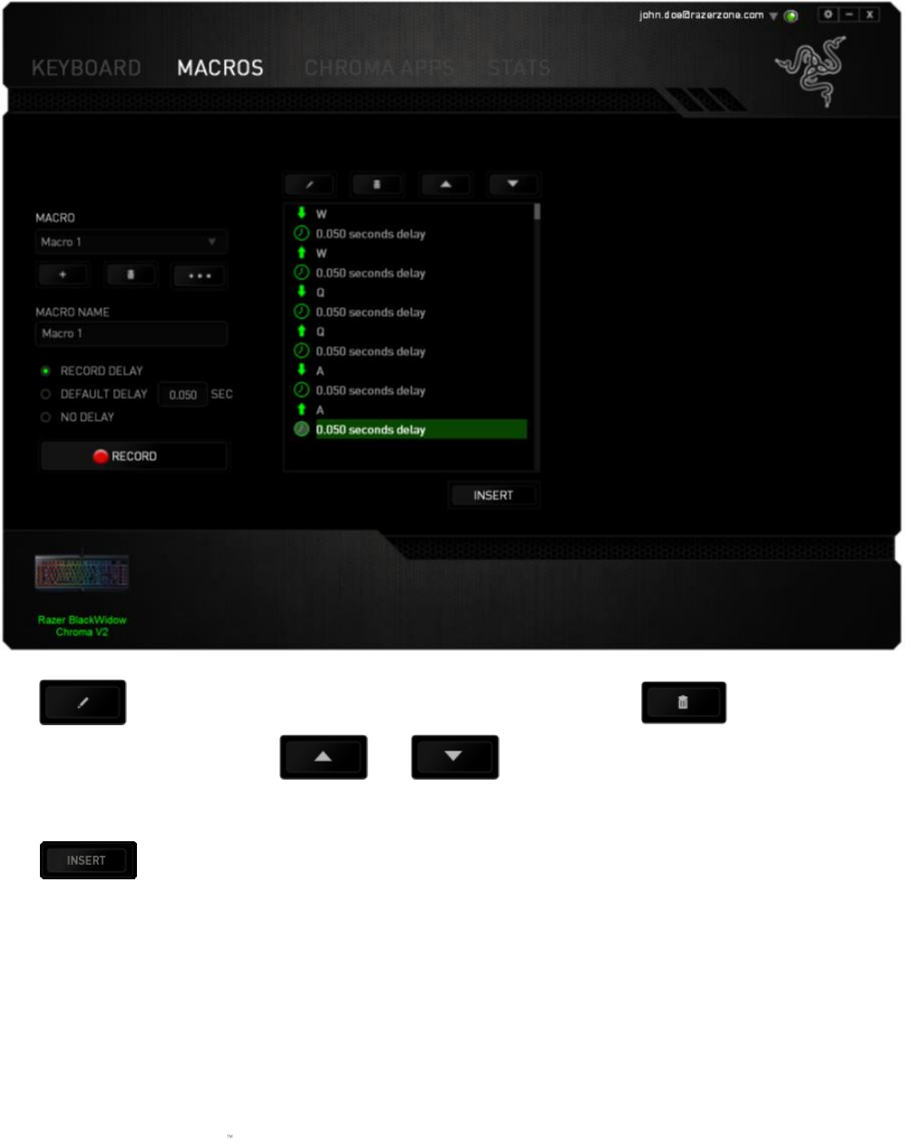 command on the macro screen. Each keystroke or button press is arranged sequentially with the