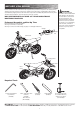 Assembly and Set-Up Attaching the Handlebars 1 Using a 6mm hexagonal key wrench, remove bolts from handlebar clamp. 3 Insert bolts and tighten 2 Place handlebars in handlebar clamp and adjust angle parallel to the fork. securely. When properly tightened, the handlebars should not move forward or back. Note: Handlebar clamps are located in the plastic bag. q Attaching the Front Fender 1 Align fender with the hole in the fork and insert the bolt.