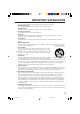 Specifications GENERAL Power supply: Power consumption: Weight: Dimensions: TELEVISION Picture tube: Tuner type: Receiving channels: 20F502TDV AC 120 V 60 Hz Operation: 110W Stand by: 4W 59.5 lbs (27.0 kg) Width: 22-9/16 inches (573 mm) Height : 20-3/8 inches (517 mm) Depth : 19-1/8 inches (485 mm) 20 inches (508 mm diagonal) Quartz PLL Frequency Synthesized 24F502TDV 135 W 79.4 lbs (36.