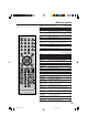 Remote control Page POWER TV/VCR DVD CH +/– 0-9 Power on/off 10,15,16,19,43,44 Press to operate TV/VCR 10,15,33,35,36,38,39 Press to operate DVD 10,38,43,44,55,57~59 Select channel 10,20,36,38 Direct channel selection of TV 10,19,23,36,38 Input setting 50,52 Enter a password 24,26,58~60 VOL +/– Adjust volume of TV 19,20 MUTE Switch off the sound 20 DISPLAY/CALL Display TV/VCR or DVD operation status 16,20,25,34,35,37,39,43 JUMP Locating desired scene 50 QUICK VIEW Switch between present/last channel 20 / /
