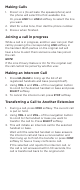 Making Calls 1. Press t or s (to activate the speakerphone) and the phone will select the first available line. Or, press LINE 1 or LINE 2 softkey to select the line you want. 2. Wait for a dial tone, then dial the phone number. 3. Press e when finished. Joining a call in progress While a call is in progress, another user can join that call by pressing the corresponding LINE softkey in the handset. Both parties on the original call will hear a tone to alert them someone else has joined the call.