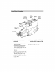 . Review camcorder's operating controls. (continued) BRIGHT Control (on Bottom of Viewfinder Eyepiece Focus Control Shoulder Strap Attachment Ring BATTERY EJECT Button Attach Rechargeable DC IN 9.6V Jack Handstrap with Lens Cap Holder Attach Adapter/ Charger's DC Cord Here Shoulder Strap Attachment Ring 10 Cassette Door (Press here to close.