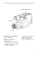 Viewfinder The camcorder’s viewfinder is a miniature monitor that displays the picture seen by the camcorder when recording. The viewfinder also can be used for viewing the tape during playback. When carrying or storing the camcorder, return the viewfinder to the original position to prevent possible damage. Viewfinder in operating position Eyepiece Viewfinder in carrying or storing position Pull here Caution: Pulling on the eyepiece may cause damage to the camcorder. 1.