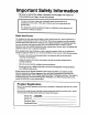 Important Safety Information * Be sure to read all the safety information on this page and inside the manual before you begin to use this product. To reduce risk of injury, charge only rechargeable batteries recommended by the manufacturer for this camera. Other types of batteries may burst causing damage and personal injury. FCC Regulations state that unauthorized changes or modifications to this equipment may void the user's authority to operate it.