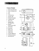 Camera Camera User Interface Top View Basic Button Functionality Button Playback mode Record mode EV/+ Advances to next Adjusts the exposure value in .5 increments stored picture Camera Front View ranging from -1 to +1 _/- Displays preceding picture number Toggles between auto flash (flash on) and flash off o o o o • u • o • Power (O) Power on/off Power on/off Menu ([_3) Pressed quickly: switches to record menu. Pressed Pressed quickly: switches to playback menu.