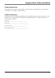 Important Information Product Registration Please fill out the product registration card and return it immediately. Returning this card allows us to contact you if needed. Product Information Keep your sales receipt for proof of purchase to obtain warranty parts and service and attach it here. Record the serial number and model numbers — both numbers are located on the product. Model No. ___________________________ Serial No.