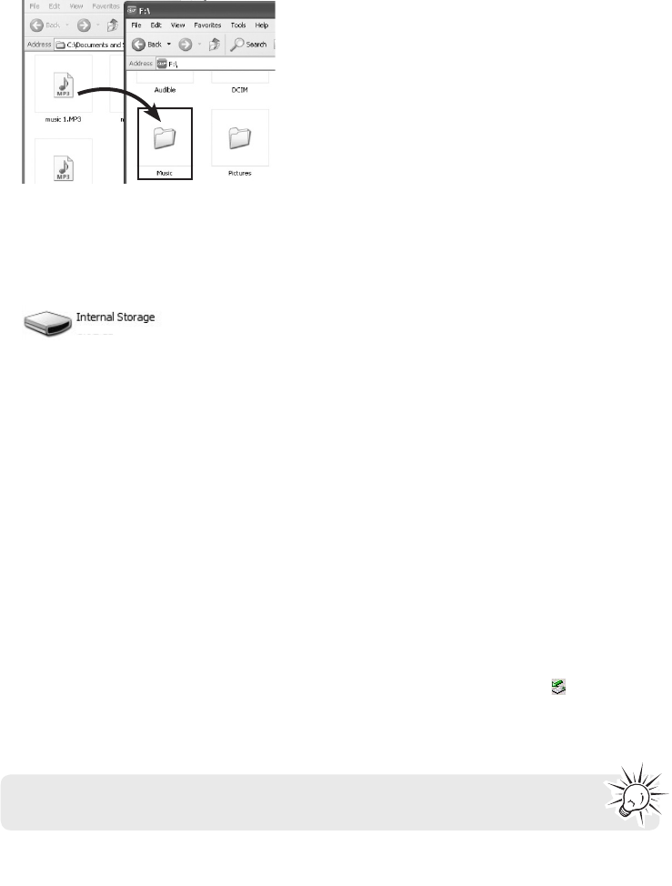2. Arrastre y suelte los archivos de música en la carpeta Music.