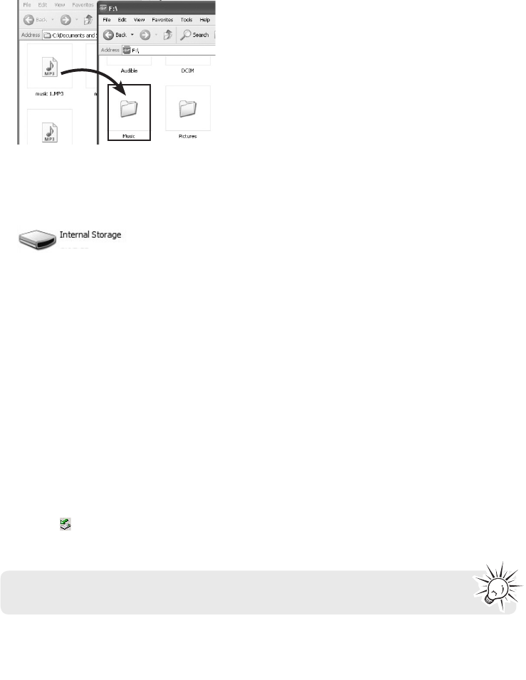 2. Glissez et déposez des fichiers musicaux dans le répertoire Musique.