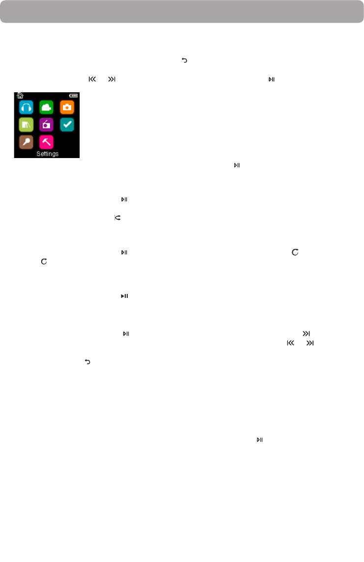 • Appuyez à plusieurs reprises sur pour activer ou désactiver la lecture aléatoire. Les fichiers musicaux