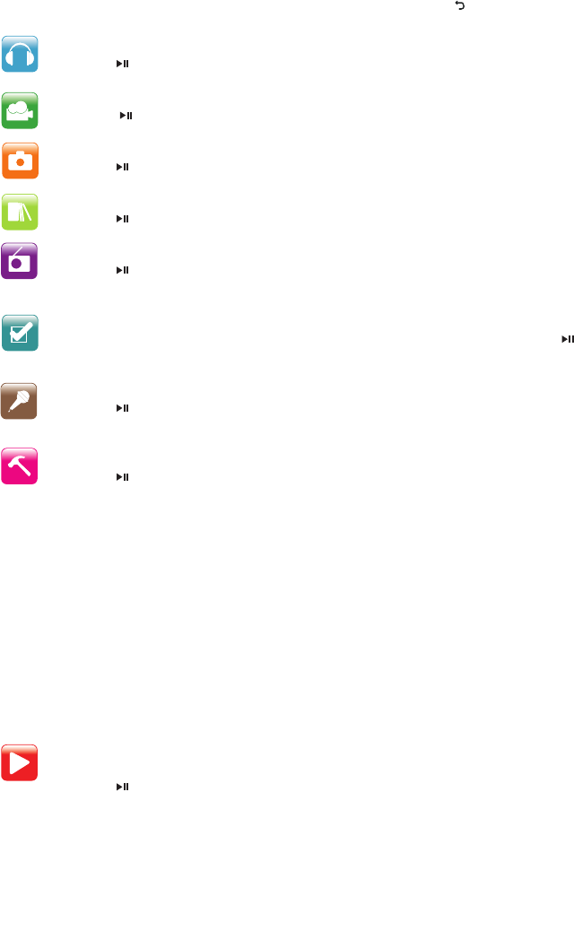 Press to enter the Radio menu and choose to either listen to the radio or play vrecordings of