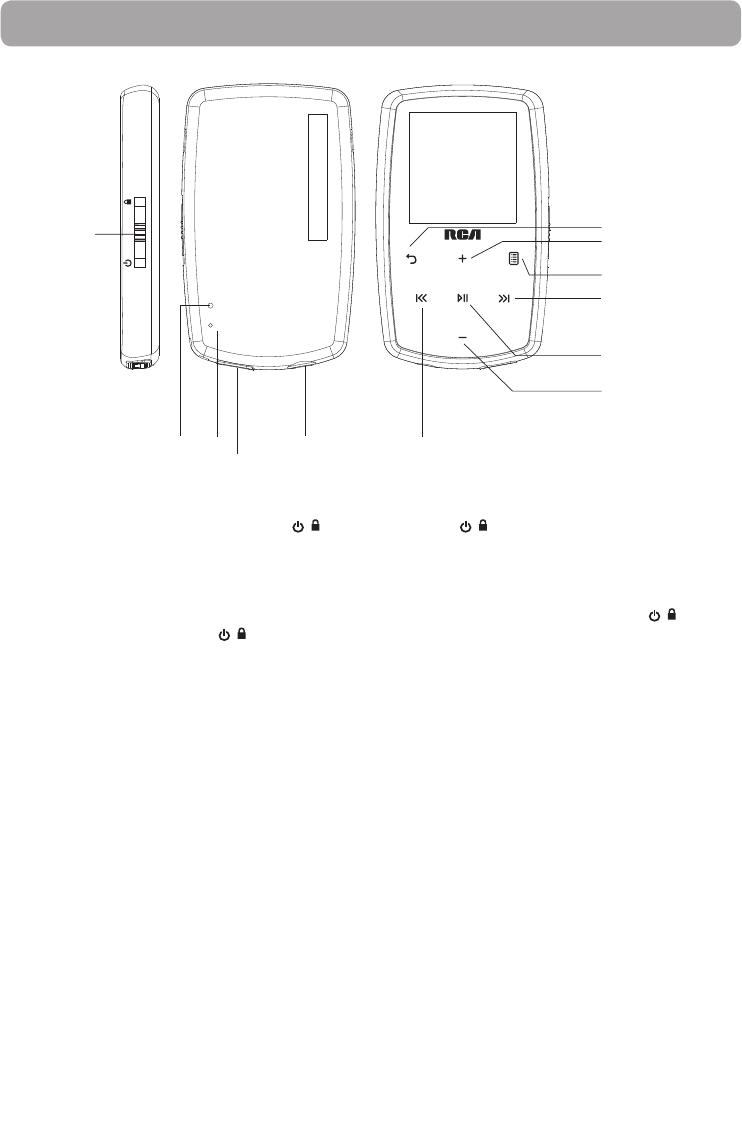 Para encender el reproductor, deslice/hacia / abajo. Deslice hacia / abajo otra vez para apagar el