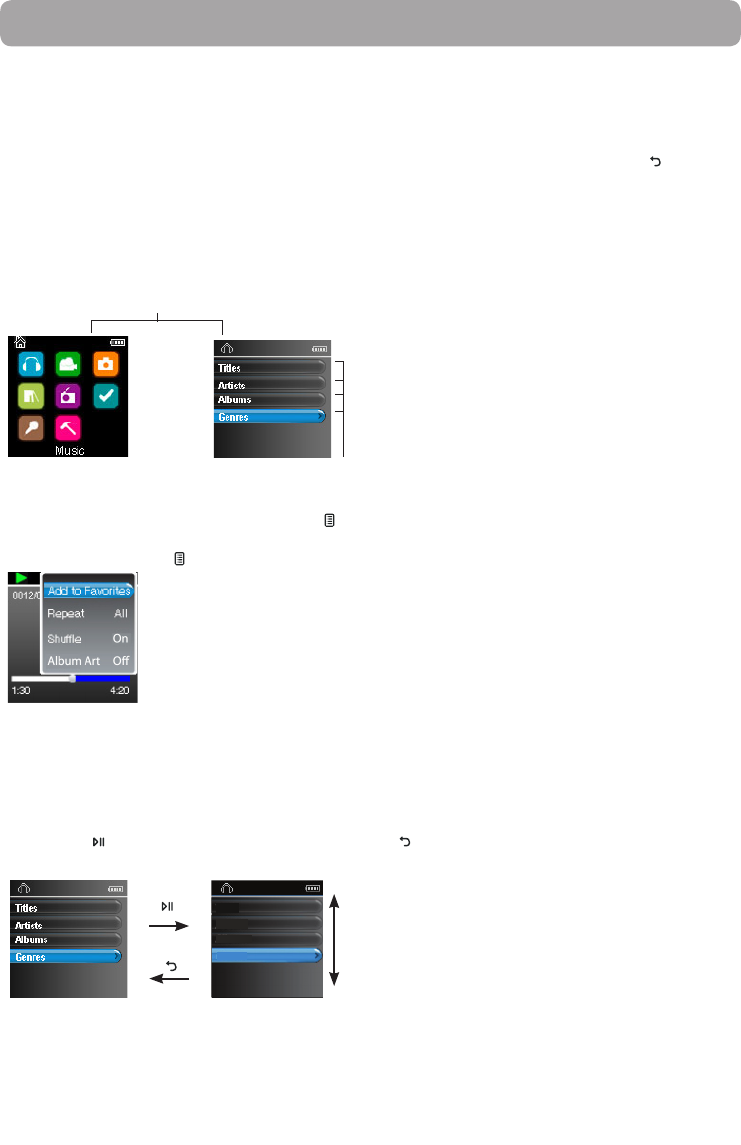 El reproductor tiene dos tipos de menú: