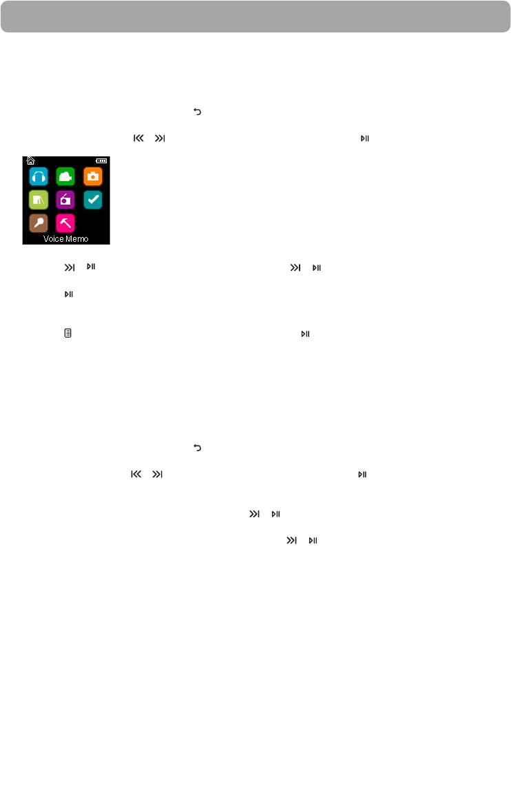 ó para seleccionar Voice Memo, y presione para entrar al menú Voice