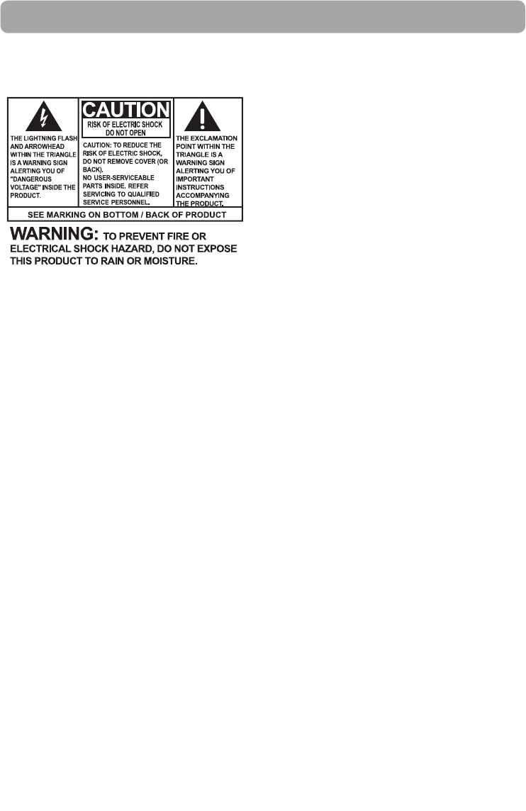 • Refer all servicing to qualified service personnel. Servicing is required when the apparatus has been