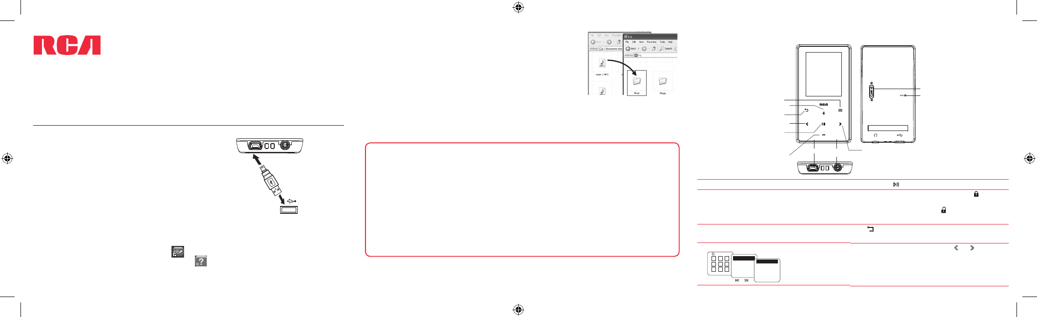 • Video, photo, and audible les must be transferred to their respective folders on the player to ensure