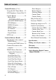 Table of Contents Camera Features (Cont.) Using the Self-Timer Mode ... 23 LCD Brightness Control Dial 23 Control Buttons ..................... 24 Macro Mode (ENTER/MACRO button) 24 QUALITY/INDEX button .. 24 ZOOM button ..................... 25 DISPLAY button................. 26 MENU button ..................... 26 LCD button ......................... 26 Monitor status ..................... 27 Tripod Mount ...................... 27 Erase Image(s) .................... 32 Rotate Image(s) ..................