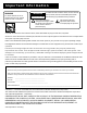 Important Information WARNING To reduce the risk of electric shock, do not remove cover (or back). No user serviceable parts inside. RISK OF ELECTRIC SHOCK DO NOT OPEN Refer servicing to qualified service personnel. WARNING To reduce the risk of fire or shock hazard, do not expose this TV to rain or moisture. This symbol indicates "dangerous voltage" inside the product that presents a risk of electric shock or personal injury. This symbol indicates important instructions accompanying the product.