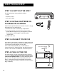 First Things First Step 1: What’s in the Box? The following items come packed in the box: • VCR STOP•EJECT TV•VCR RECORD POWER PLAY • Remote control • RF coaxial cable PA U S E VIDEO INPUT VIDEO LEFTMONO TAPE SPEED REV CHANNEL RIGHT TRACKING INPUT VCR1 DVD STEP 2: Install Batteries In the Remote Control ON • OFF VCR2 TV AUX SAT • CABLE MUTE SEARCH VOL VOL CH + CH SPEED GO BACK GUIDE INFO OK MENU CLEAR 1 2 4 Follow these steps whenever you need to install or change the b