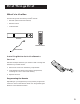 First Things First Connection D TV IN Good Picture and Sound Quality SATELLITE DISH To use this connection you must have: • TV with RF input DSS RECEIVER CABLE OR OFF-AIR ANTENNA OUT TO TV CH4 CH3 • VIDEO R VIDEO R AUDIO L IN FROM ANT Coaxial cables AUDIO L SATELLITE IN To connect TV and antenna or cable box: 1. Connect coaxial cables as shown. To receive DSS® programming: • Tune TV to channel 3 or 4 (depending on how you set the CH3/CH4 switch on the back of the receiver.