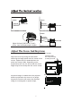 Follow below picture to adjust the vertical location. SCREEN SCREEN VERTICAL DIMENSION VERTICAL DIMENSION PROJECTOR ROJECTOR SCREEN VERTICAL DIMENSION PROJECTOR Adjust this knob ( ANGLE ADJ. knob) to fine- tune the display angle to higher. Adjust The Focus And Keystone Follow below picture to adjust the focus and trapezoidal screen. Adjust the focus by turning the knob while observing the image pixels near the center of the screen. Optimal focus is obtained when the pixels are clearly visible.