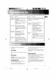 Problem Solution Problem Solution System will not turn on Check power cord for a secure connection. Distorted or Inspect the tape heads and clean and demagnetize. noisy tape recordings Unplug the unit for a moment, and then plug into power source again. Check the outlet by plugging in another device. No sound Increase the volume setting. Check connection to speakers. Check that you have selected the appropriate function: CD, TAPE, TUNER. Poor radio Check antenna connection. Move antenna.