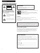 Introduction Important Information CAUTION RISK OF ELECTRIC SHOCK DO NOT OPEN WARNING To reduce the risk of fire or shock hazard, do not expose this product to rain or moisture. TO REDUCE THE RISK OF ELECTRIC SHOCK, DO NOT REMOVE COVER (OR BACK). NO USER SERVICEABLE PARTS INSIDE. REFER SERVICING TO QUALIFIED SERVICE PERSONNEL. This symbol indicates “dangerous voltage” inside the product that presents a risk of electric shock or personal injury.