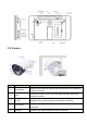 2.2 Camera Item What it is What it does 1 Microphone Captures the sound on camera side and transmits the sound from camera to monitor. 2 Lens Catches the video in front of the lens and transmits video from camera to Monitor. 3 IR LED Infrared LEDs provide viewing in no/low light conditions. 4 PIR sensor Detects motion in front of the lens and emits detection signal to transmitter. 5 Speaker Produces the sound transmitted from the monitor.