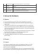 6 Camera antenna Receives & Sends signals to or from the Monitor. 7 Bracket Use the bracket to mount the camera on a wall or other flat surfaces. 8 Pair button The pair button is located on the back of the camera. Press pair button when monitor is in pairing mode. 9 Deterrent light Deterrent light flashes when motion detected. 3. Set up the Hardware 3.1 Monitor 1. Flip out the stand on the back of the monitor and position the antenna. 2.
