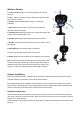 Wireless Camera 1. Camera Antenna –Receives & Sends signals to or from the Receiver. 2. Lens – Catches the video in front of the lens and transmits video from camera to receiver. 3. IR LED –Infrared LEDs provide viewing in no/low light conditions. 4. PIR sensor–Detects motion in front of the lens and emits detection signal to transmitter. 5. Thumbscrew-Rotates the thumbscrew to adjust the angle of the camera until the desired view is set 6. Speaker-Produces the sound transmitted from the monitor. 7.