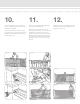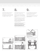 3. 4. Place a beam cover (E) on the temporary plank (Fig. 6). Insert mounting brackets (H) in each end of bottom beam (Fig. 11); ensure proper alignment. Set the bottom beam in position between the posts. (Fig. 12) NOTE: Routed holes in the bottom beam cover (E) are angled routs. Insure that the bottom beam with bottom cover is facing in the right direction to allow the balusters to stand plumb, i.e. straight up (Fig. 7). Secure the brackets to the post using mounting screws (J) (Fig. 13).
