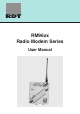 RM96xx Radio Modem Series User Manual Features ● UHF FM Synthesised Radio Transceiver ● Transparent serial data transmission ● ● ● User selectable RF channel, Address and Tx power level RS-232 & RS-485 Serial Data Interfaces ● LED indicators for radio functions, signal strength and serial line status 6 modes of operation including Asynchronous, Modem and Repeater ● Forward Error Correction (FEC) ● Automatic Repeat Request (ARQ) Brief Description The RM96xx Series of Radio Modems are a range