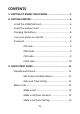 CONTENTS 1. GETTING TO KNOW YOUR PHONE ................................ 1 2. GETTING STARTED ........................................................ 6 Install the USIM/SIM card ............................................ 6 Insert the memory card ............................................... 7 Charging the battery .................................................... 8 Turn your phone on and off......................................... 9 Password ...........................................................
