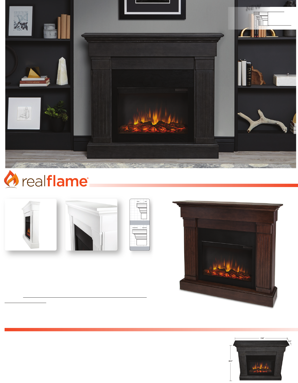 Flame LED technology. Available in Chestnut Oak, White, and Gray
