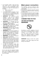 If an extension cable is used, the plug and socket must be waterproof and conform to the requirements below regarding the length and dimensions of the cable. 1,0 mm ² max. 12,5 m 1,5mm²max.20 m If the power cable is damaged, it must be replaced by the manufacturer, their service agent or a qualified professional in order to avoid any danger.