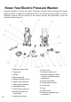 Know Your Electric Pressure Washer Read the operator’s manual and safety instructions carefully before operating the electric pressure washer. Compare the illustration below to the electric pressure washer in order to familiarize yourself with the location of the various controls and adjustments. Save this manual for future reference. 1. Extension spray wand 12. Power cord 2. Trigger gun 13. Pressure washer unit 3. Wrench 14.Onboard storage for QuickConnect nozzles,detergent bottle,brush 4.